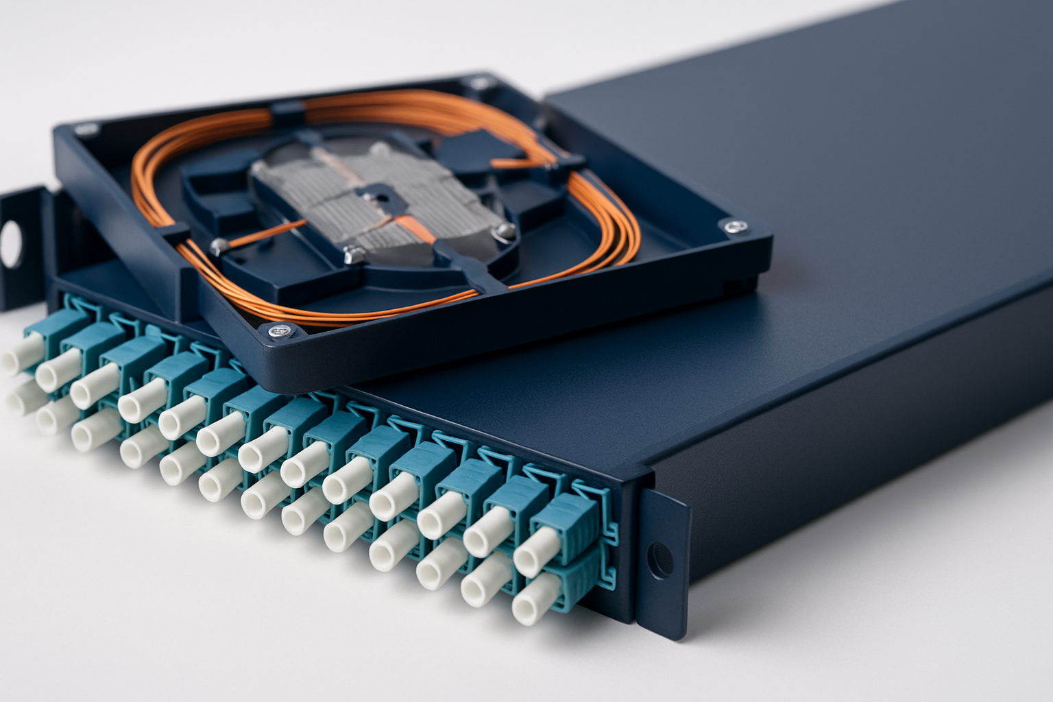Diese hohe Dichte wird durch die Verwendung von hochdichten LC-Quad-Adaptern erreicht, die vier LC-Verbindungen auf der Fläche eines Standard-SC-Duplex-Adapters unterbringen. Für Backbone-Verbindungen mit hohen Bandbreitenanforderungen stehen zusätzlich MPO/MTP-Module zur Verfügung, die 12 oder 24 Fasern pro Stecker verwalten.